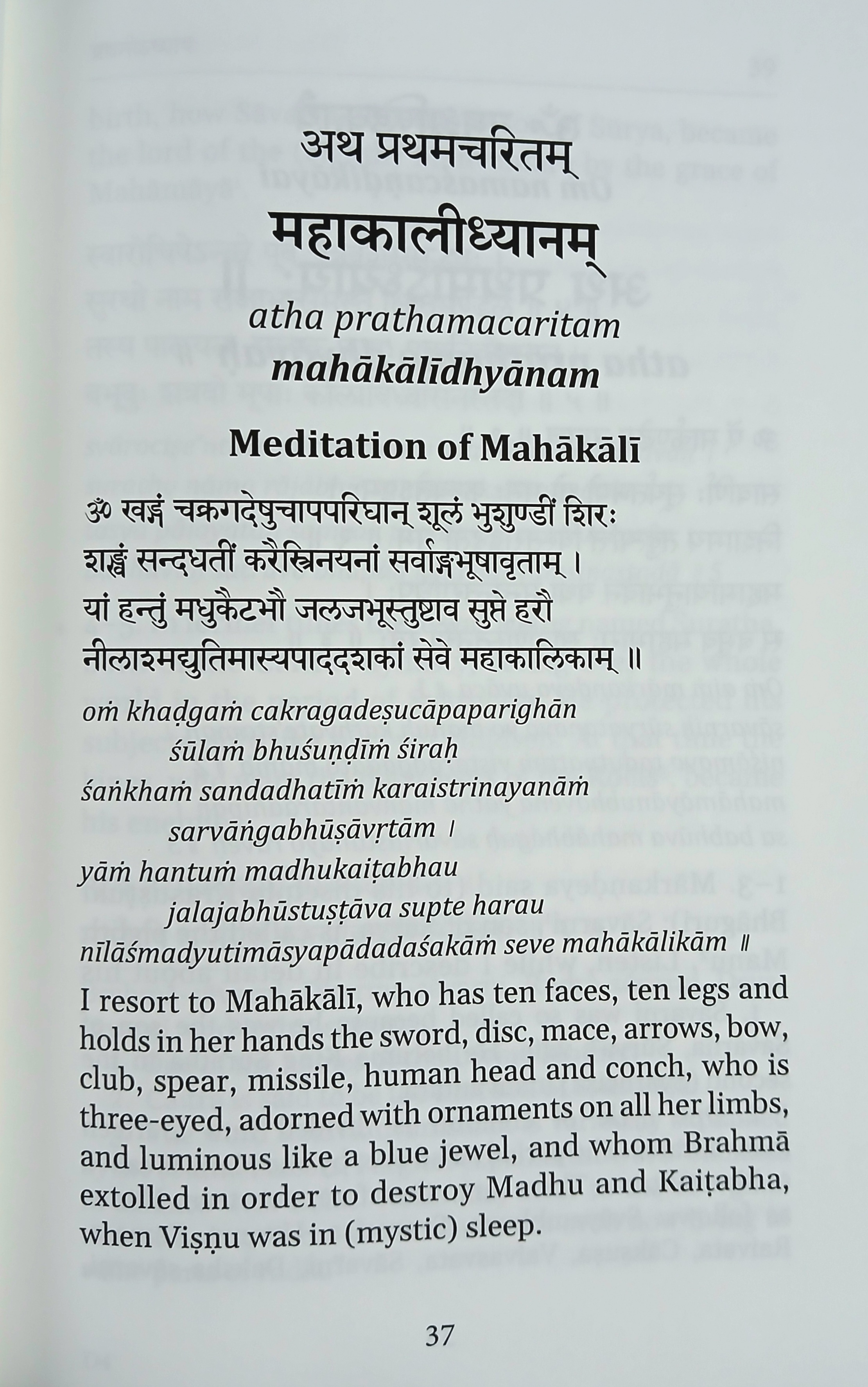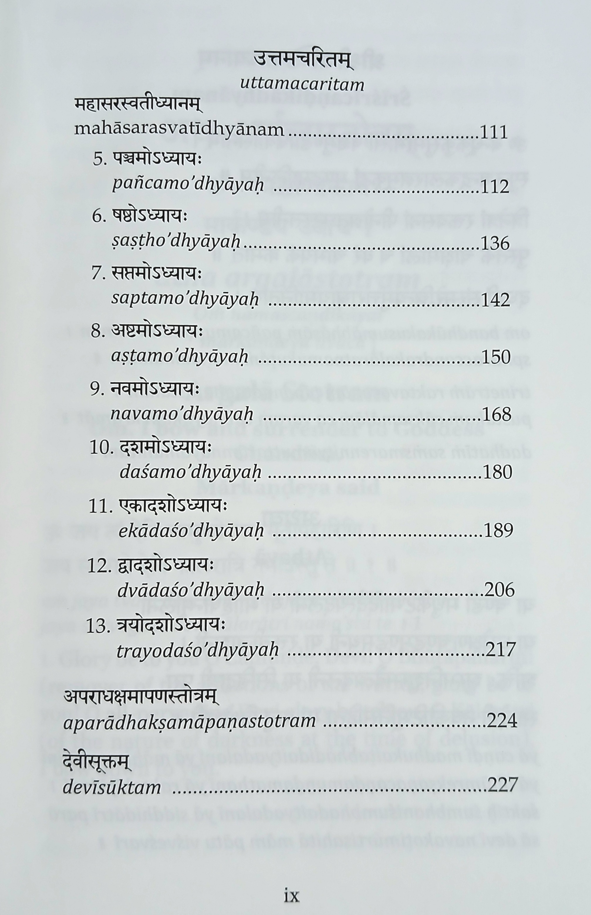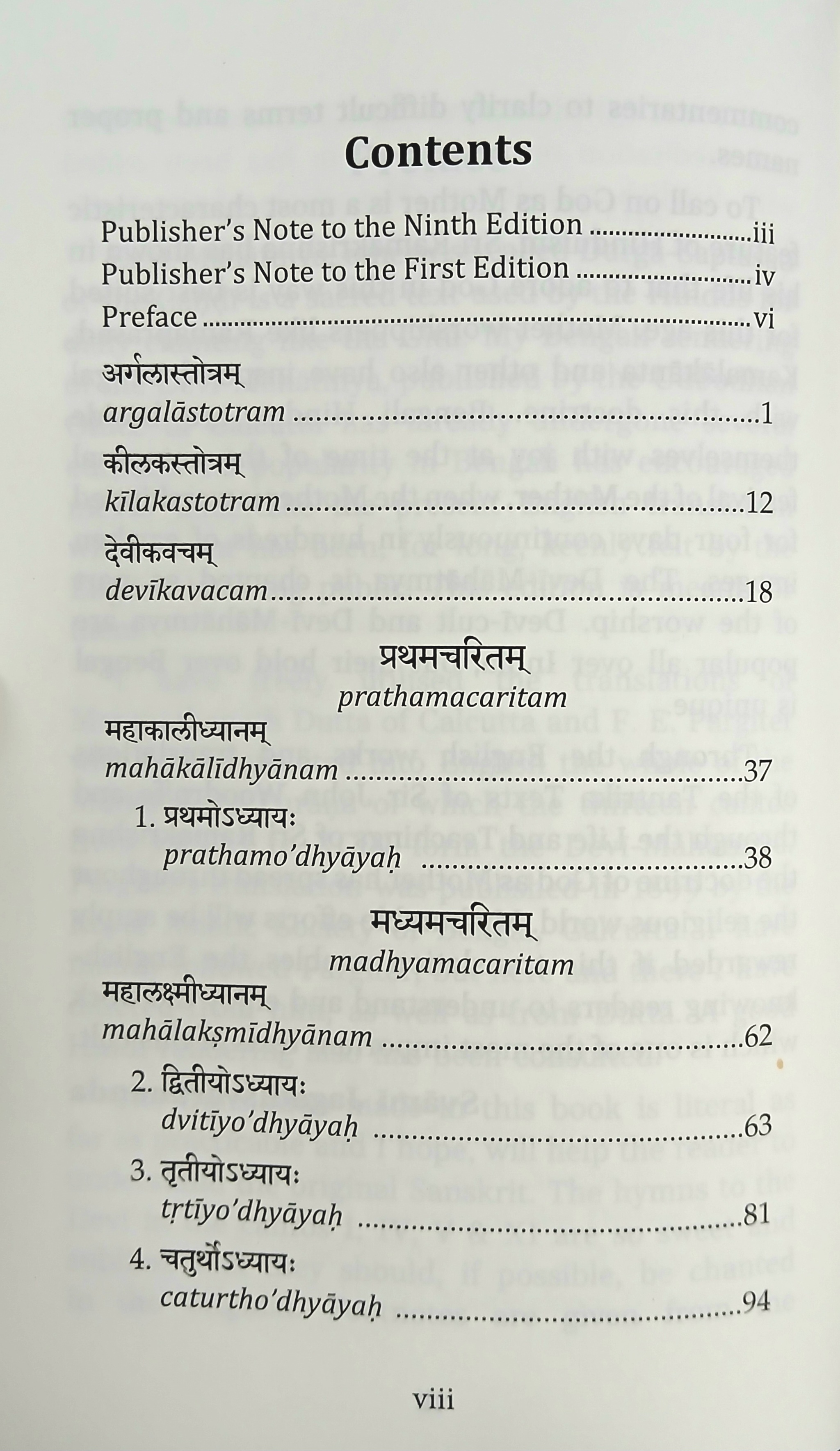 For the sake of recitation, Dhyana-slokas, Argala-stotra, Kilaka-stotra and Devi-kavacha at the end and Aparadha-kshamapana-stotra and Devi-suktam at the end have been added in the book.