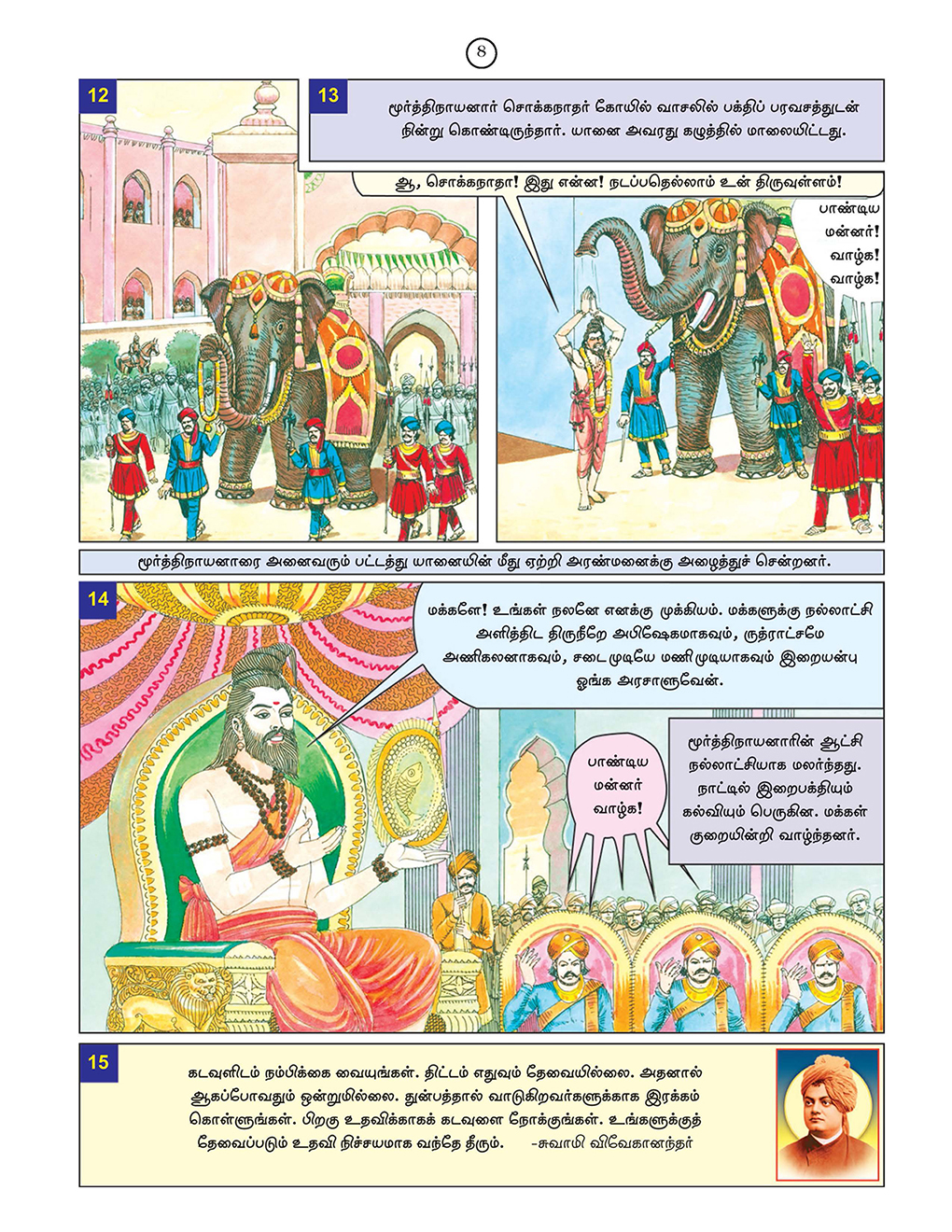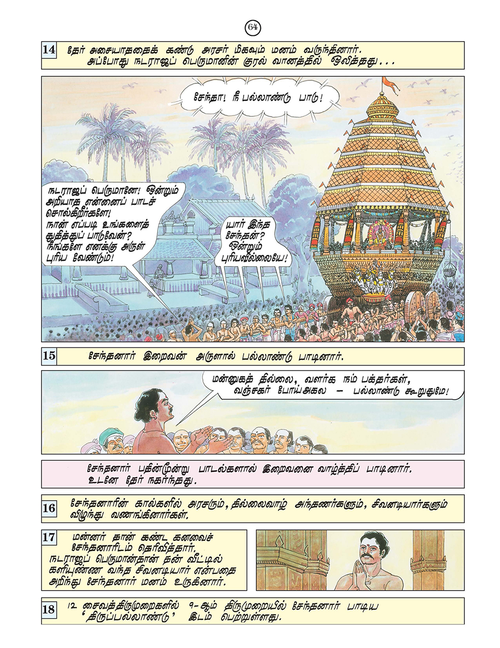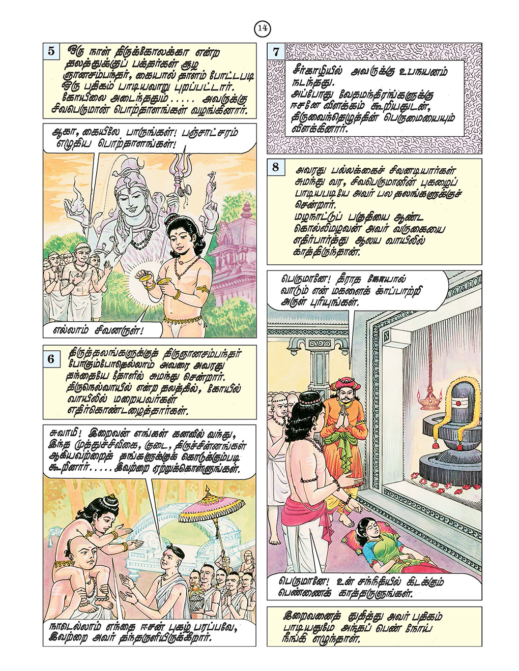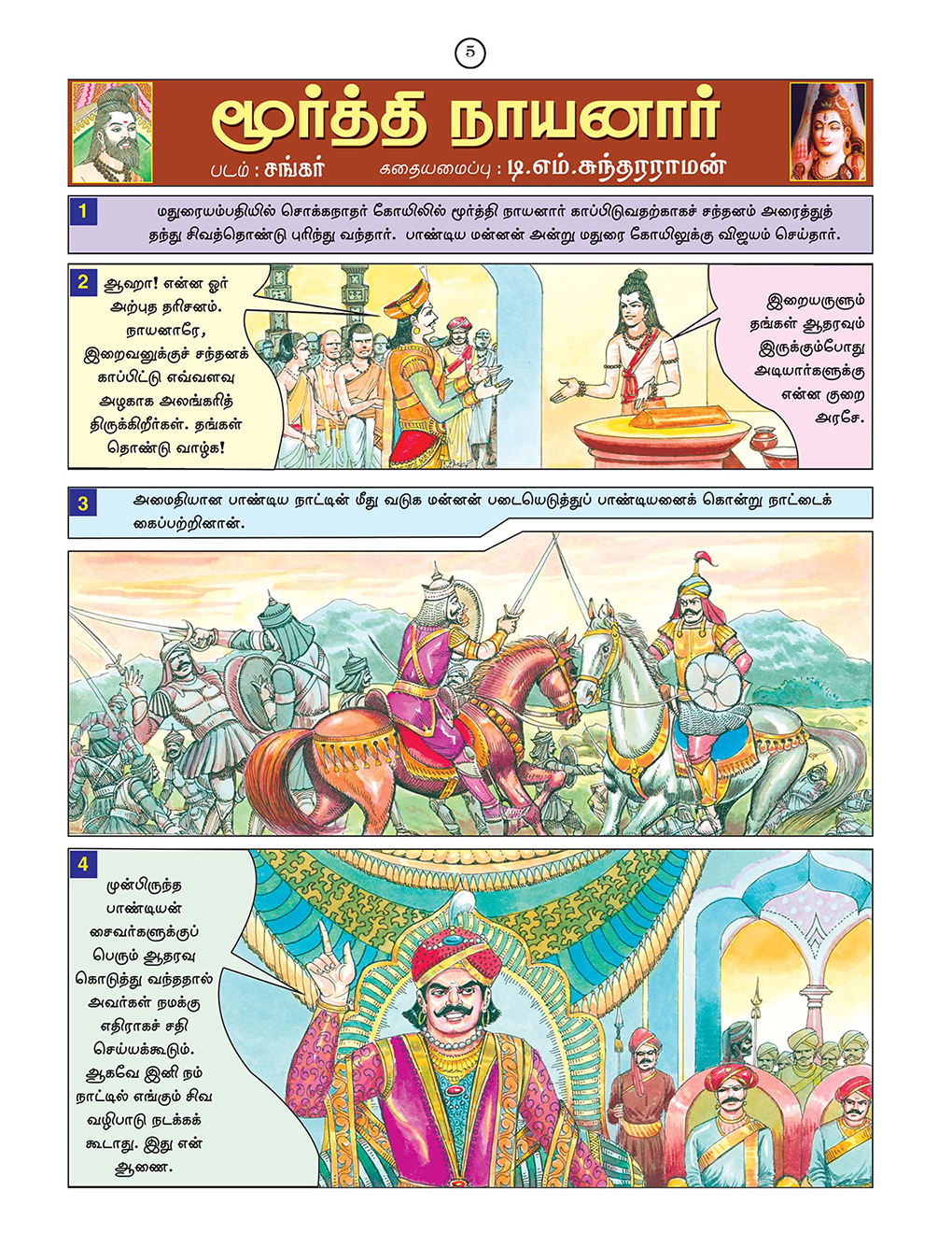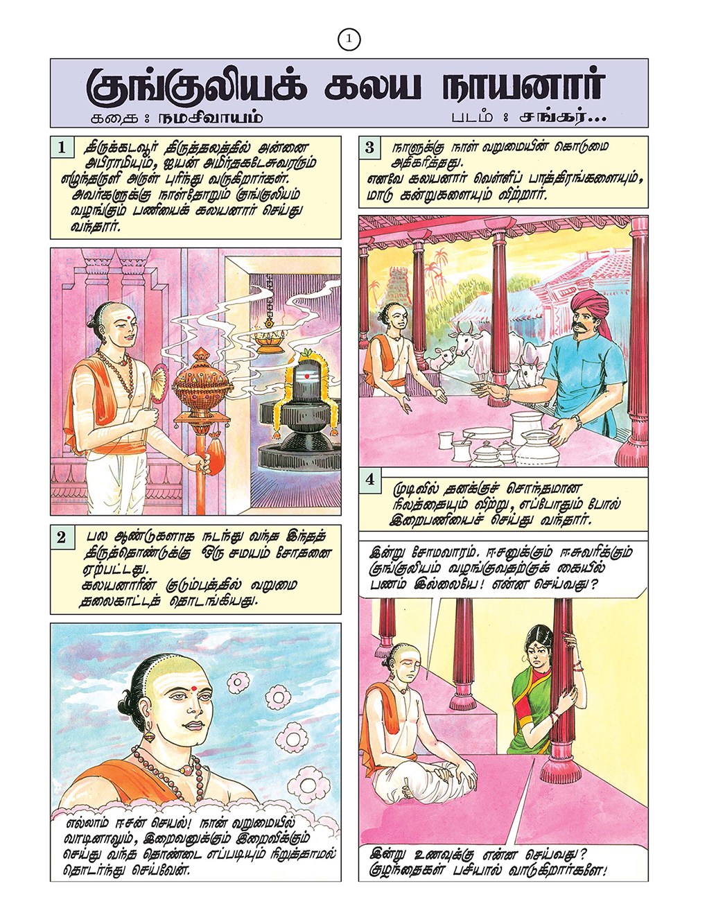 Tamil Original: Sri Ramakrishna Vijayam Tamil Magazine Published by Sri Ramakrishna Math Chennai. Following Pictorial Stories are included in this book: 1. Kunkiliya Kalaya Nayanar 2. Murthi Nayanar 3. Chandesvara Nayanar 4. Appar and Sambandhar 5. Sambandhar and Mangayarkkarasi 6. Kalikama Nayanar 7. Somasi Mara Nayanar 8. Kochengat Chola Nayanar 9. Cheraman Perumal Nayanar 10. Cheraman Perumal Nayanar and Sundarar 11. Sundaramurti Nayanar 12. Sundarar and Paravai Nachiyar 13. Kundaiyur Kizhar and Sundarar 14. Manickavachakar 15. Varaguna Pandyan 16. Chenthanar 17. Sivabhakta Dasimaiyya 18. Saga Pushpadanta 19. Gurunamasivaya 20. Nambiandar Nambi and Saiva Sciptures